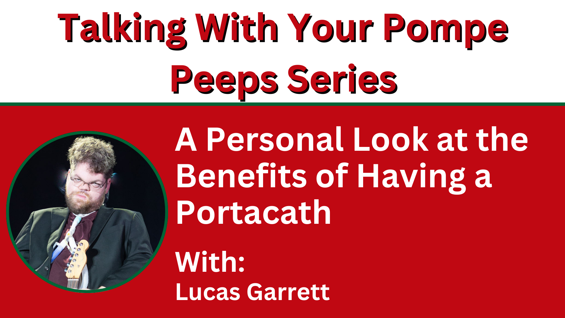 The concept of IV enzyme replacement therapies is not foreign to the Pompe community. For many patients, having a portacath makes the infusion process easier. We invite you to take part in this TWYPP that offers personal insight into the advantages of having a portacath. The session is being led by Lucas Garrett of the AMDA, a longtime user of portacaths.