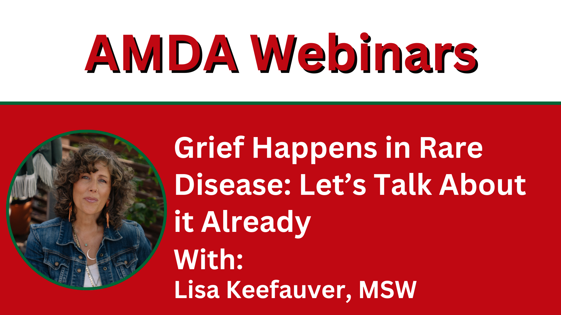 Webinar Details Title: Grief Happens in Rare Disease: Let’s Talk About it Already Date: Thursday, January 15, 2026 Speaker:Lisa Keefauver,