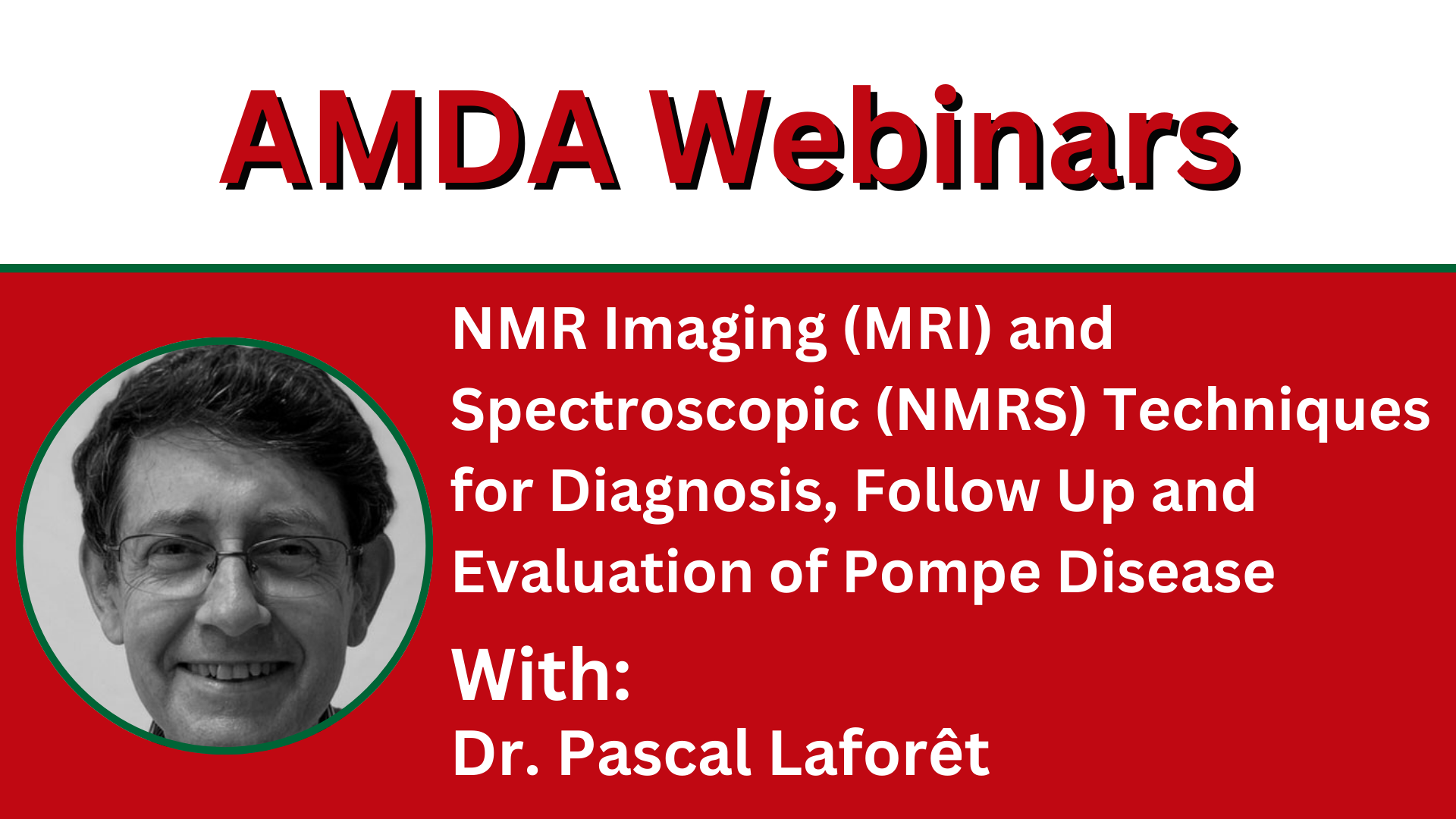 Webinar Details Title: NMR Imaging (MRI) and spectroscopic (NMRS) techniques for diagnosis, follow up and evaluation of Pompe disease Date: