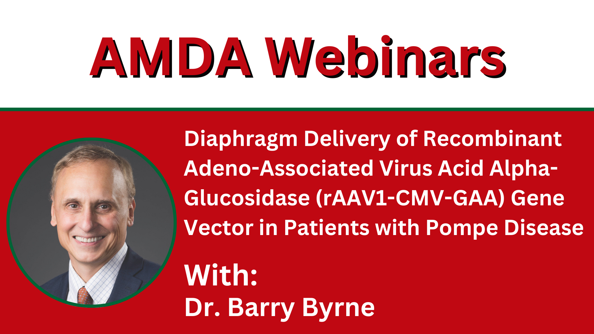 Webinar Details Title: Diaphragm Delivery of Recombinant Adeno-Associated Virus Acid Alpha-Glucosidase (rAAV1-CMV-GAA) Gene Vector in Patients With Pompe Disease Date: