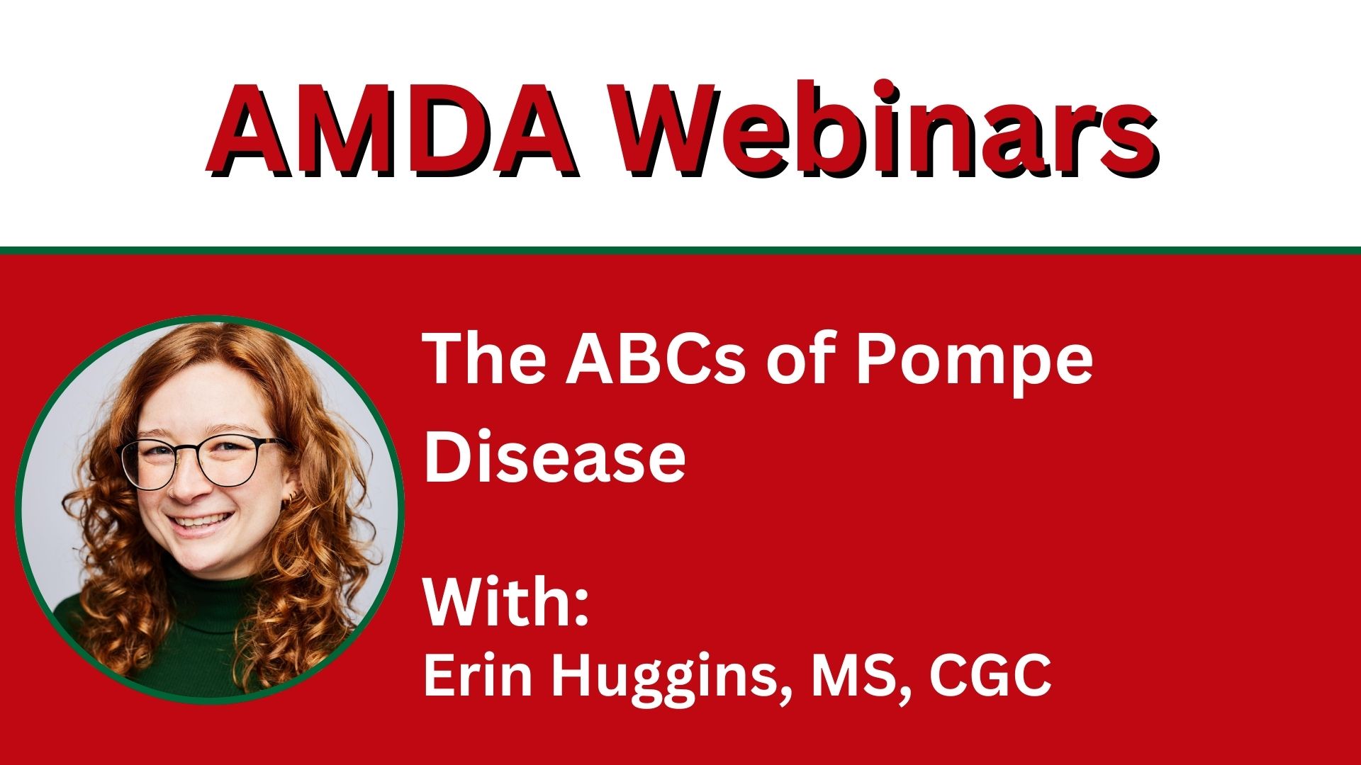 Webinar Details Title: The ABCs of Pompe Disease Date: Monday, January 13, 2025 Speaker:Erin Huggins, MS, CGC Webinar Overview:Are you